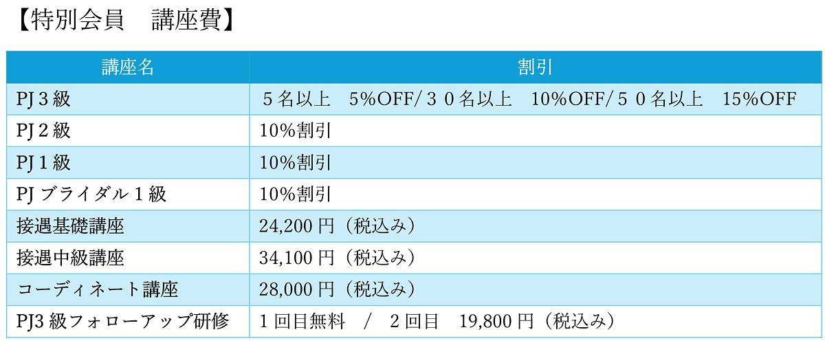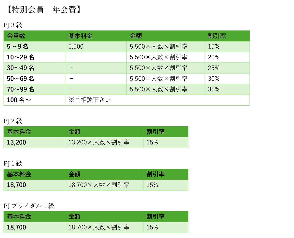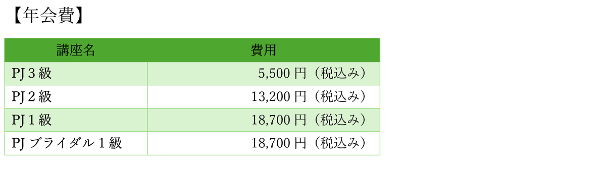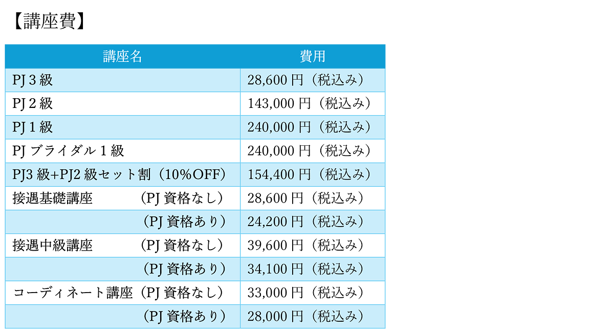 (PJ3級:28,600円)+(PJ2級:143,000円)=(通常合計:171,600円)ですが、同時に申し込みいいただくとセット割 (10%OFF) 154,440円(税込み)となります。